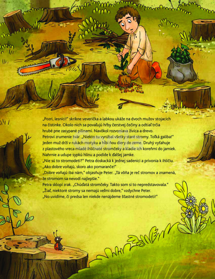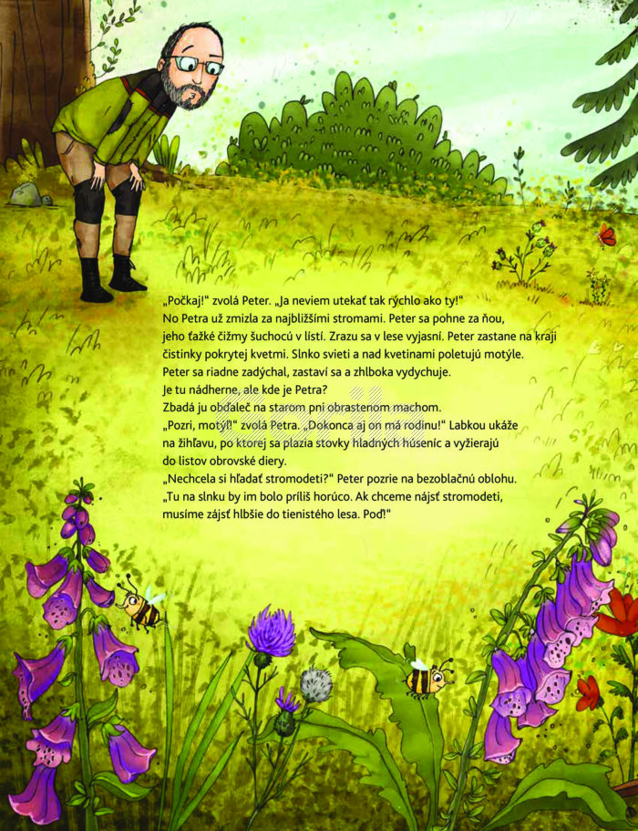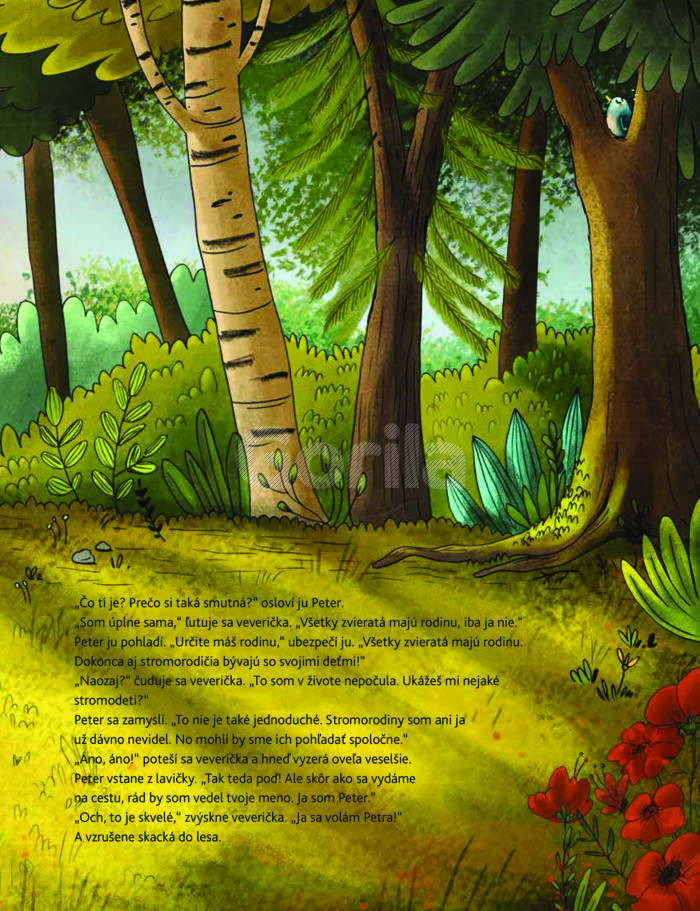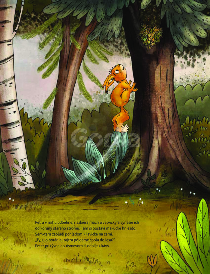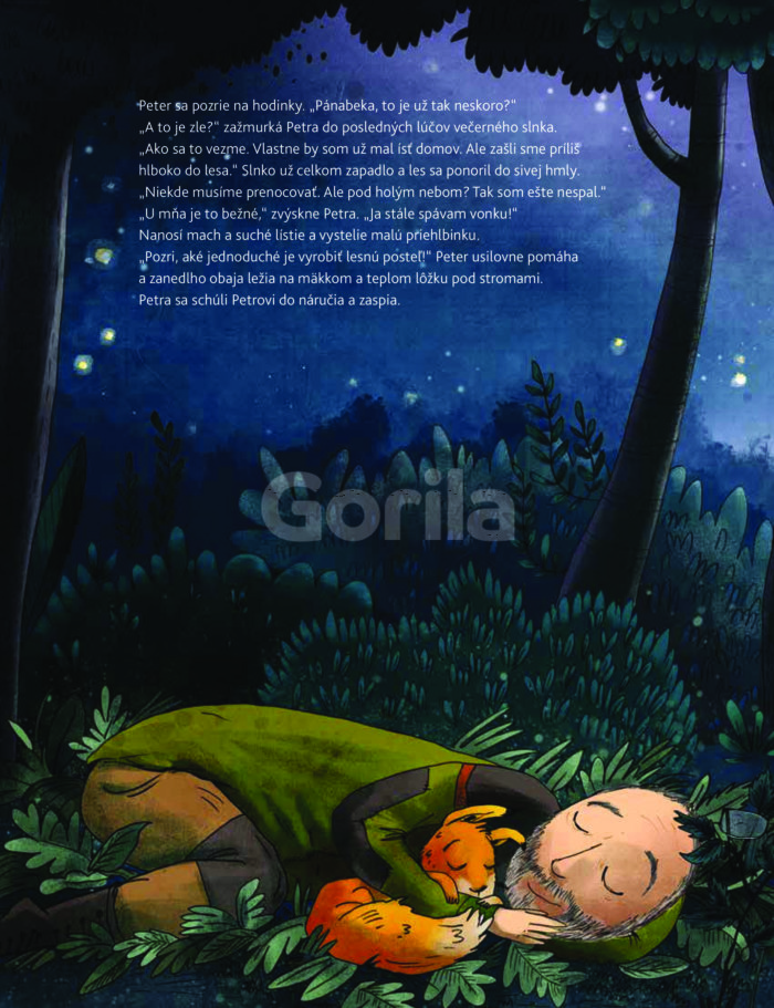 Najznámejší nemecký lesník Peter Wohlleben rozpráva v prvej obrázkovej knihe vrúcny príbeh. Dobromyseľný príbeh, ktorý deťom jedinečným spôsobom priblíži les a prírodu. Kde bývajú stromodeti? To by rada vedela malá veverička Petra. A prečo sa ľudia nemusia báť vlkov? Horár Peter vezme veveričku na dobrodružnú lesnú potulku. Cestou prespia pod šírym nebom, upúta ich rúbanie ihličnatých stromov a naozaj stretnú vlka! Ale podarí sa im nájsť aj stromodeti a ich rodičov? A objavia rodinu, v ktorej Petra môže zostať?