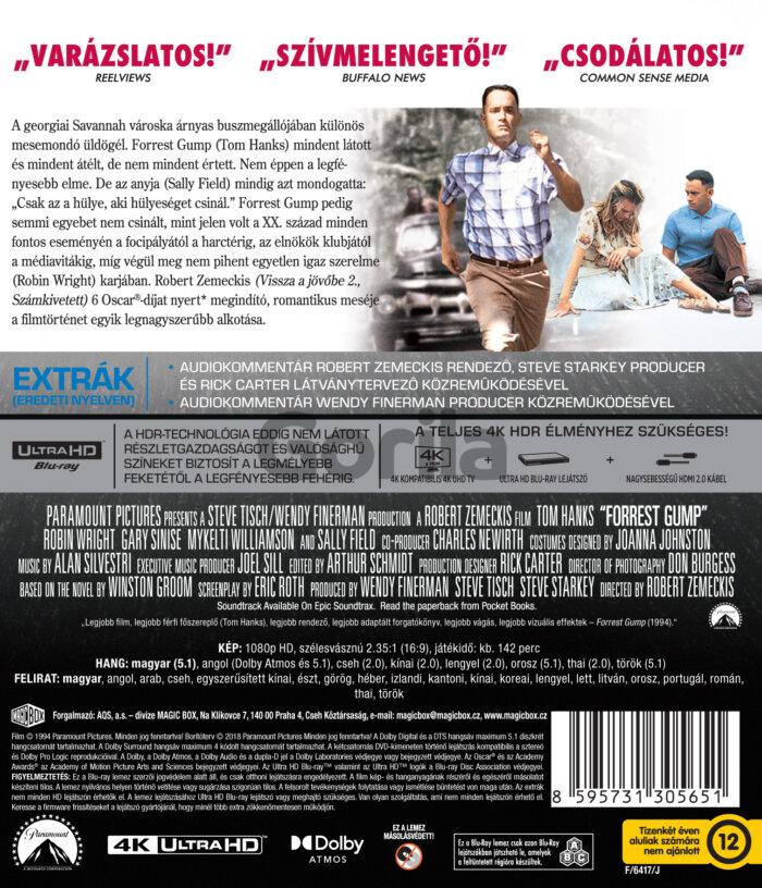 Originálny názov: Forrest Gump Rok vydania: 2025 Katalógové číslo: P01496 Rozmer: 135×170 mm Obal: Blu-ray obal Titulky: maďarské, české, anglické Jazyk: maďarčina, angličtina, čeština