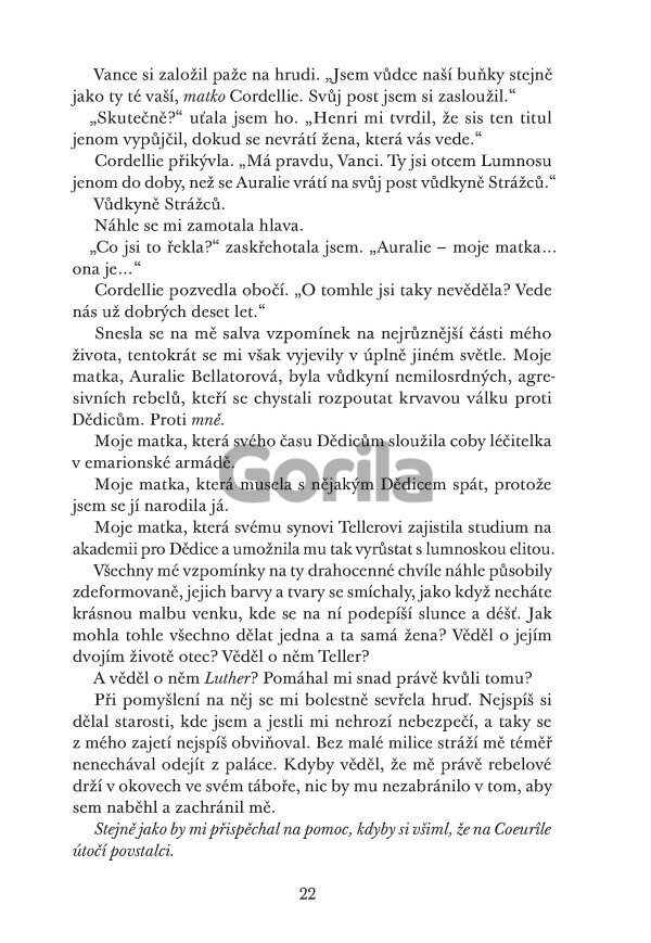Záhada kolem Diemina původu se začíná rozplétat a ona se spolu s Lutherem vydává na nečekanou cestu napříč říšemi Emarionu. V odpovědích se může skrývat klíč k ukončení války, ale pokud ho Diem chce nalézt, musí se postavit bolestivé pravdě o své matce, své krvi i svém osudu.