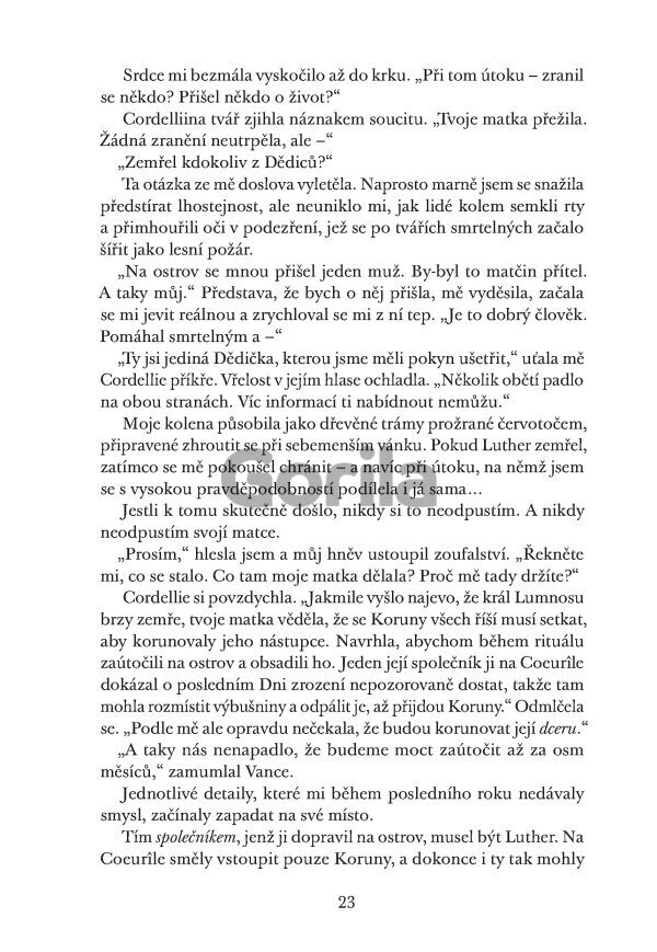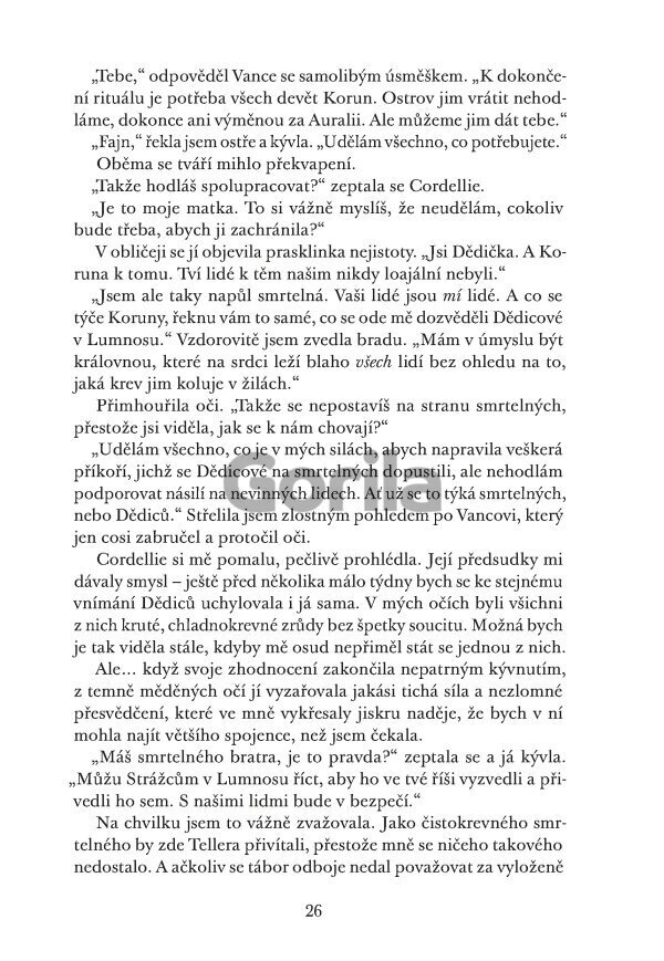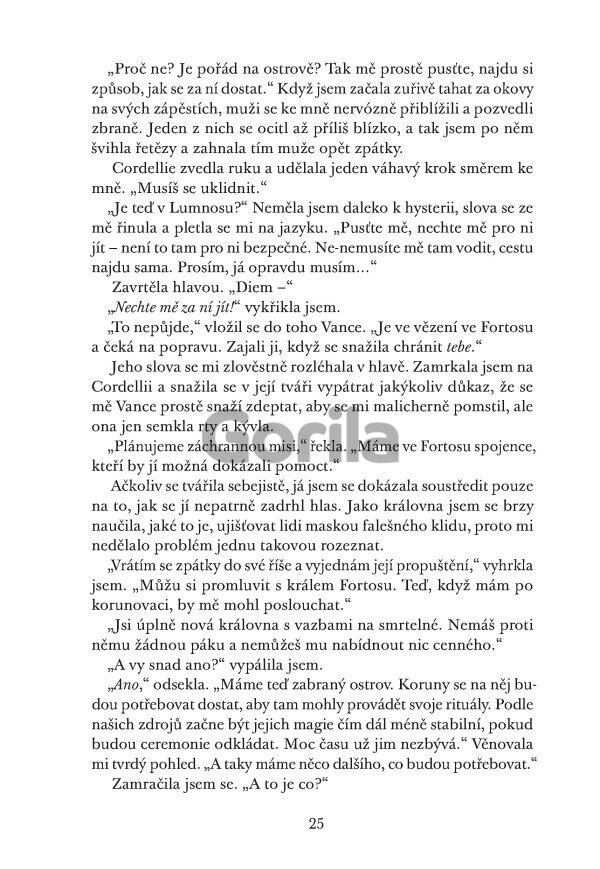 Zatímco se rozpadají stará spojenectví a formují nová, Koruny upírají zrak právě na ni. Některé se mohou stát jejími největšími spojenci, jiné ji chtějí vidět mrtvou. Aby mohla Diem jejich krutovládu ukončit, musí rozeznat přítele od soka a zbudovat vlastní armádu, i kdyby to znamenalo riskovat úplně všechno.