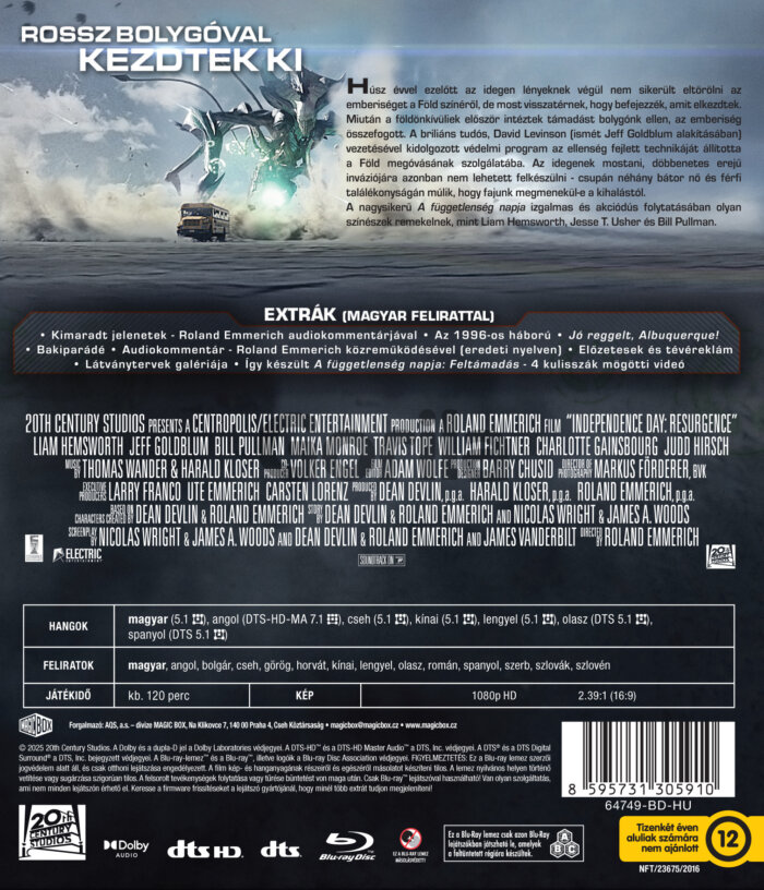 Originálny názov: Independence Day: Resurgence Rok vydania: 2025 Katalógové číslo: D02065 Rozmer: neuvedený Obal: Blu-ray obal Titulky: maďarské, české, anglické Jazyk: maďarčina, angličtina, čeština