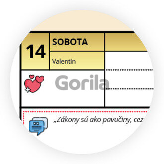 Miesto na Vaše poznámky a termíny v rámci každého dňa s upozornením na sviatky, medzinárodné dni, meniny a pod.