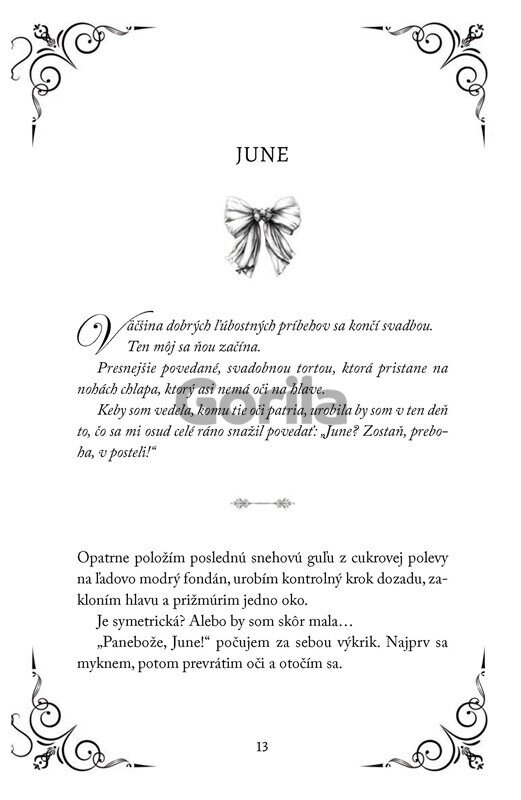 Keď agentúra dostane zákazku na zimnú svadbu dcéry budúceho starostu, vyzerá to, že June má kariéru pevne v rukách. Lenže nepočíta s osudom a vlastnou minulosťou. Jantárové oči budúceho ženícha, ktoré sa na June nečakane uprú, totiž veľmi dobre pozná… tie isté oči jej kedysi zlomili srdce.