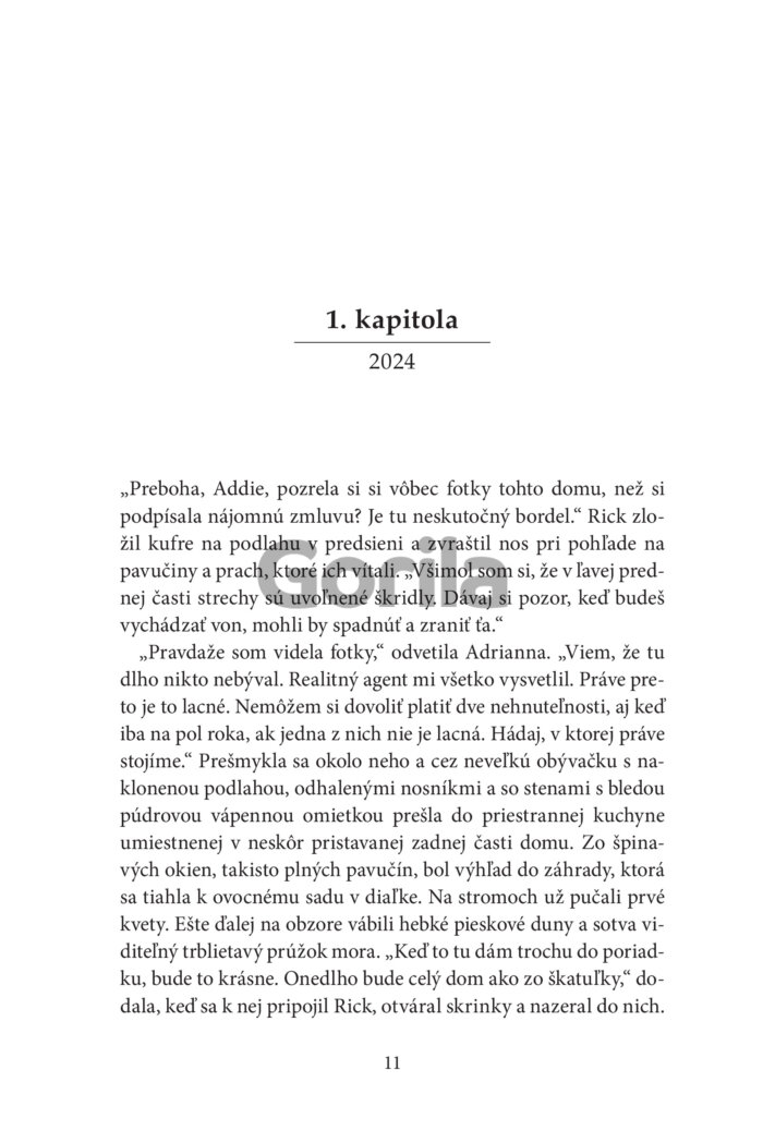 Keď Adrianna príde do zanedbaného domčeka pri mori na norfolskom vidieku, dúfa, že tu na čas unikne pred vlastným životom. No hneď po príchode zistí, že dom v sebe ukrýva viac, než len stopy minulosti. Pod uvoľnenou podlahou objaví tajomné zápisky a v zarastenej záhrade zvláštne vyrezávaný kameň – a netuší, že práve odomkla dvere do dávnej histórie.