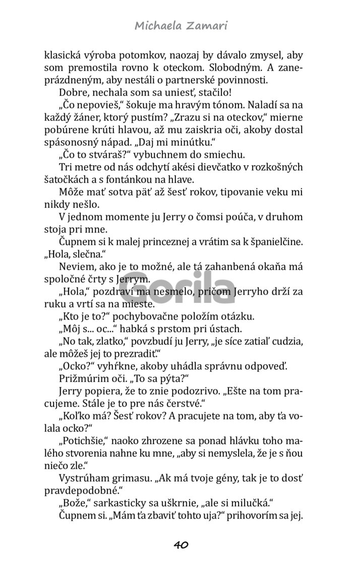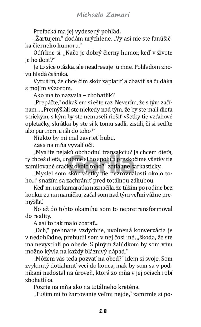 Zrelý biznismen má všetko. Úspešnú kariéru, priateľov a život plný možností. Až na tú jedinú – vlastnú rodinu. Po nevere neprestal snívať o potomkoch, len hľadá spôsob, ako sa vyhnúť zlatokopkám. Pre ženu je to jednoduchšie, stačí jej zohnať vhodného darcu, ale čo má robiť slobodný chlap, ktorý chce zvyšok svojho života zasvätiť otcovstvu?