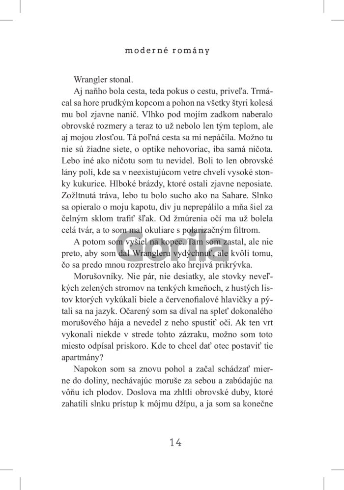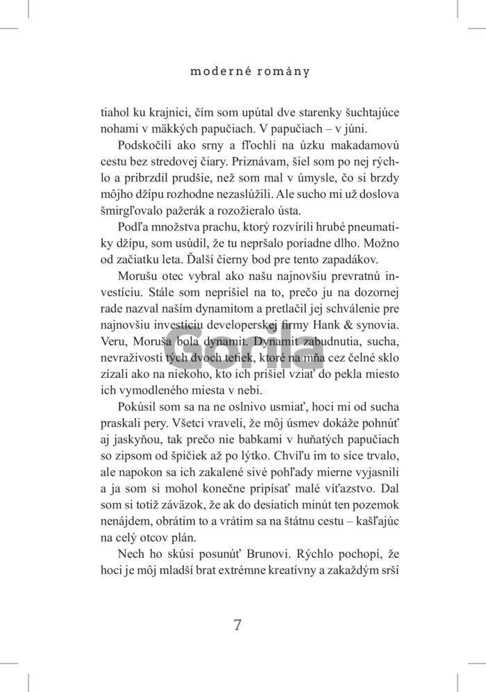 Keď Benjamín Hank dorazí do Moruše, má jasno – je to koniec sveta, kde čas zastal a sny dávno vyhasli. Prišiel sem po tri podpisy, aby jeho otec, mocný developer, mohol na mieste starého ranča postaviť luxusný hotel.