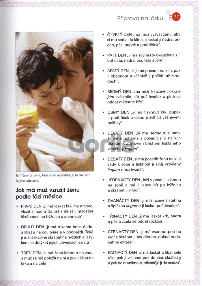 Chcete být ti nejlepší milenci, neodolatelní partneři a prožít nezapomenutelné vzrušení? Cítíte potřebu otřepat nudu všednosti ve vašem vztahu a oživit žár vášnivé lásky? Pomocí této knihy se vydejte na vzrušující cestu za láskou a milováním a nechte se inspirovat nádhernými erotickými fotografiemi všech milostných pozic a podnětivými informacemi, které vám pomohou obohatit a zpestřit váš sexuální život.