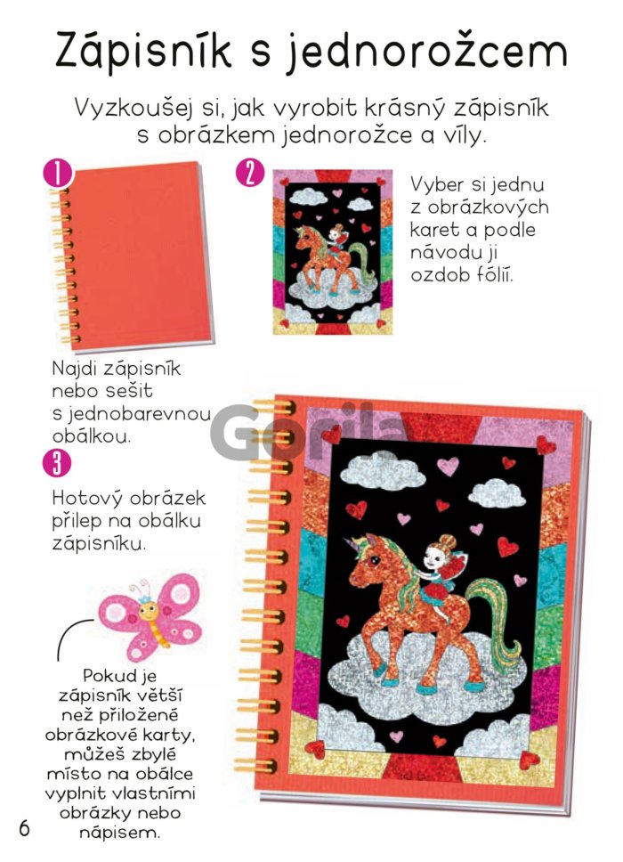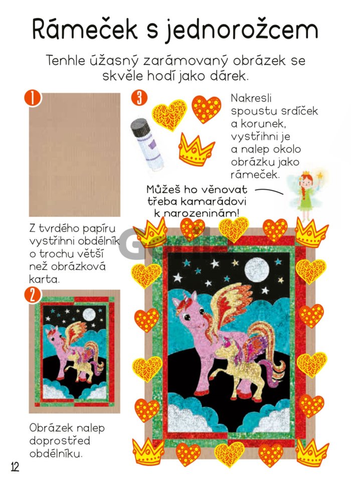V této kouzelné knížečce najdete vše potřebné k výrobě fantastických třpytivých obrázků: