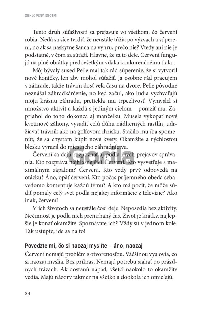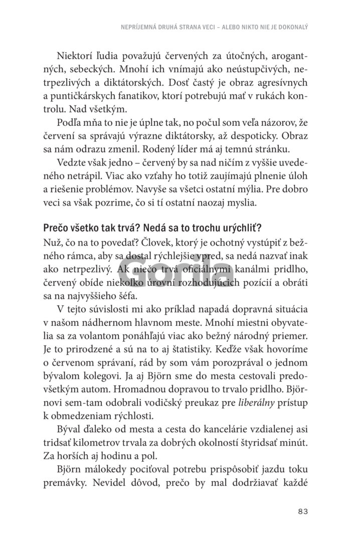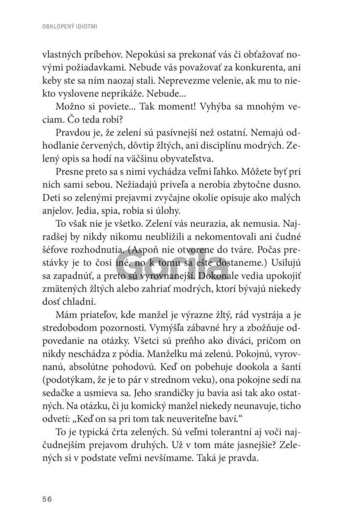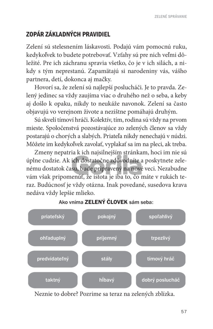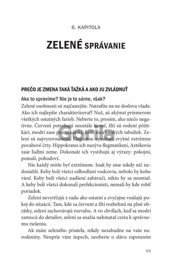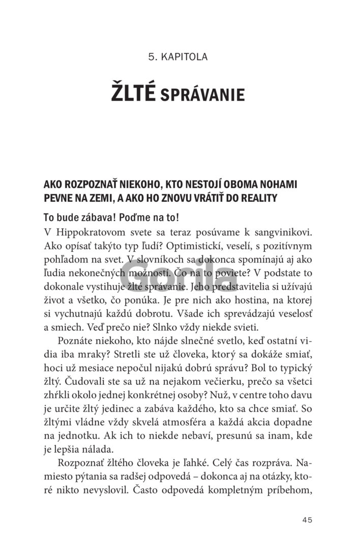 Škandinávsky bestseller, z ktorého sa po celom svete predalo už milión kópií, vysvetľuje štyri základné typy ľudského správania, ktoré definujú spôsob komunikácie a vnímania ľudí okolo nás. Červení sú dominantní a panovační. Žltí sú sociálnejší a majú v sebe viac optimizmu. Zelení sú zasa uvoľnení a kamarátski. No a modrí oplývajú analytickým myslením a presnosťou. Autor Thomas Erikson vám naozaj vtipným spôsobom vysvetlí, ako komunikovať s každým z nich.