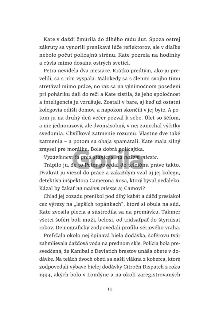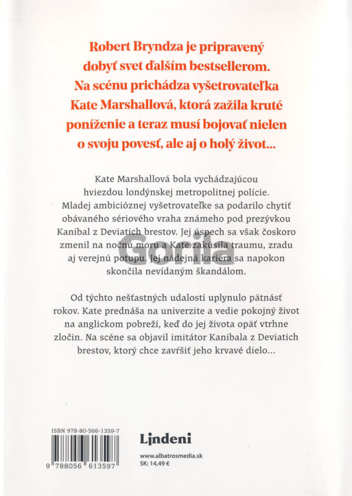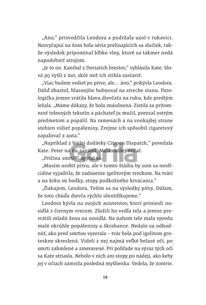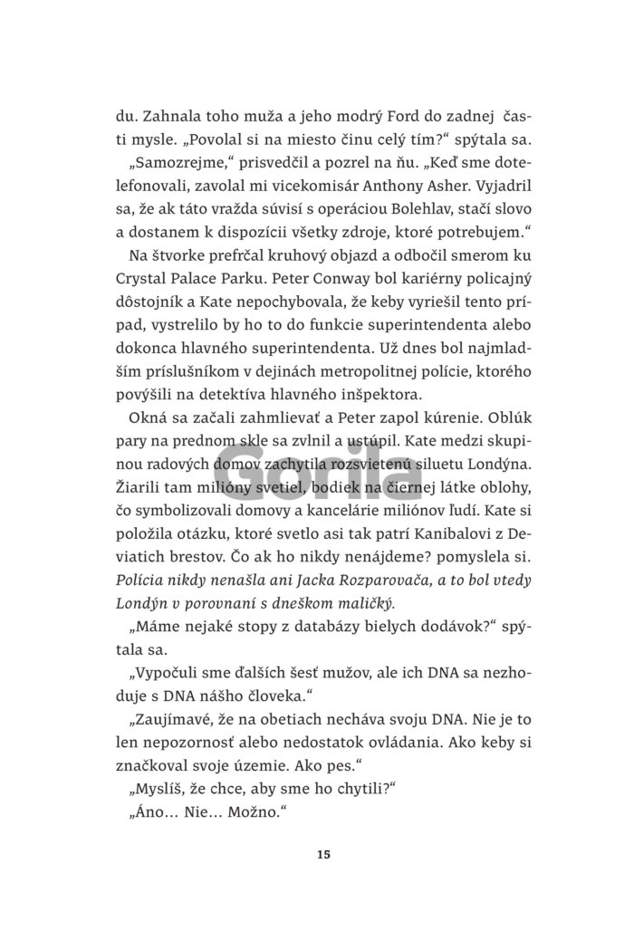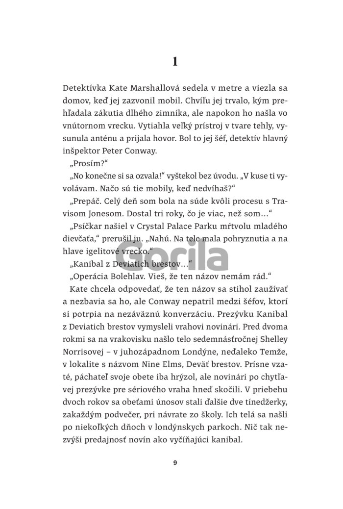 Na scénu prichádza vyšetrovateľka Kate Marshallová, ktorá zažila kruté poníženie a teraz musí bojovať nielen o svoju povesť, ale aj o holý život... Kate Marshallová bola vychádzajúcou hviezdou londýnskej metropolitnej polície. Mladej ambicióznej vyšetrovateľke sa podarilo chytiť obávaného sériového vraha známeho pod prezývkou Kanibal z Deviatich brestov. Jej úspech sa však čoskoro zmenil na nočnú moru a Kate zakúsila traumu, zradu aj verejnú potupu. Jej nádejná kariéra sa napokon skončila nevídaným škandálom. Od týchto nešťastných udalostí uplynulo pätnásť rokov. Kate prednáša na univerzite a vedie pokojný život na anglickom pobreží, keď do jej života opäť vtrhne zločin. Na scéne sa objavil imitátor Kanibala z Deviatich brestov, ktorý chce zavŕšiť jeho krvavé dielo...