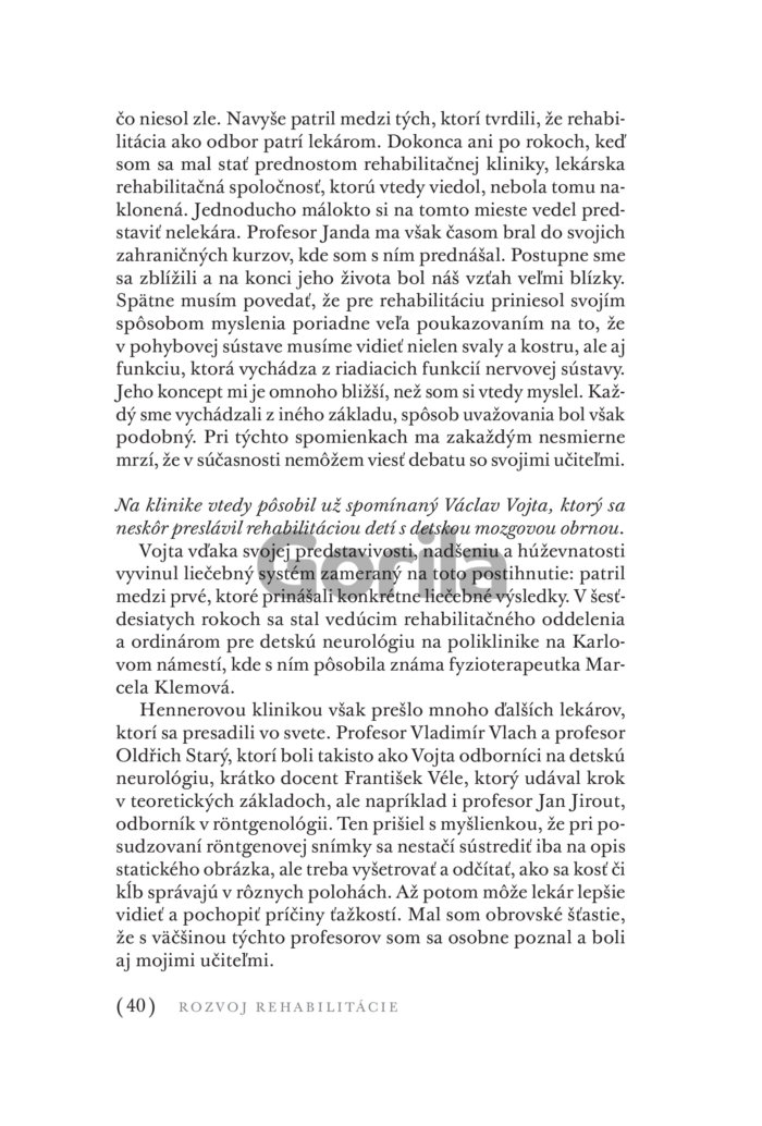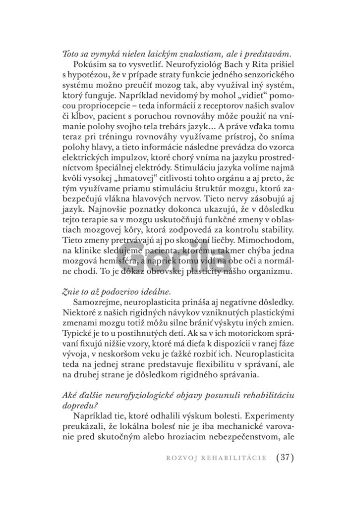 „Hýbeme sa buď málo, alebo zle a pohyb sa vytráca nielen zo života, ale i z medicíny,“ tvrdí renomovaný fyzioterapeut profesor Pavel Kolář, ktorý už tridsať rokov pôsobí na poli rehabilitačnej medicíny vrátane športovej. V dômyselnom mechanizme ľudského tela a mysle sa snaží nájsť skutočné príčiny, ktoré ho pokazili, a správnou liečbou navrátiť pacientom stratené zdravie.