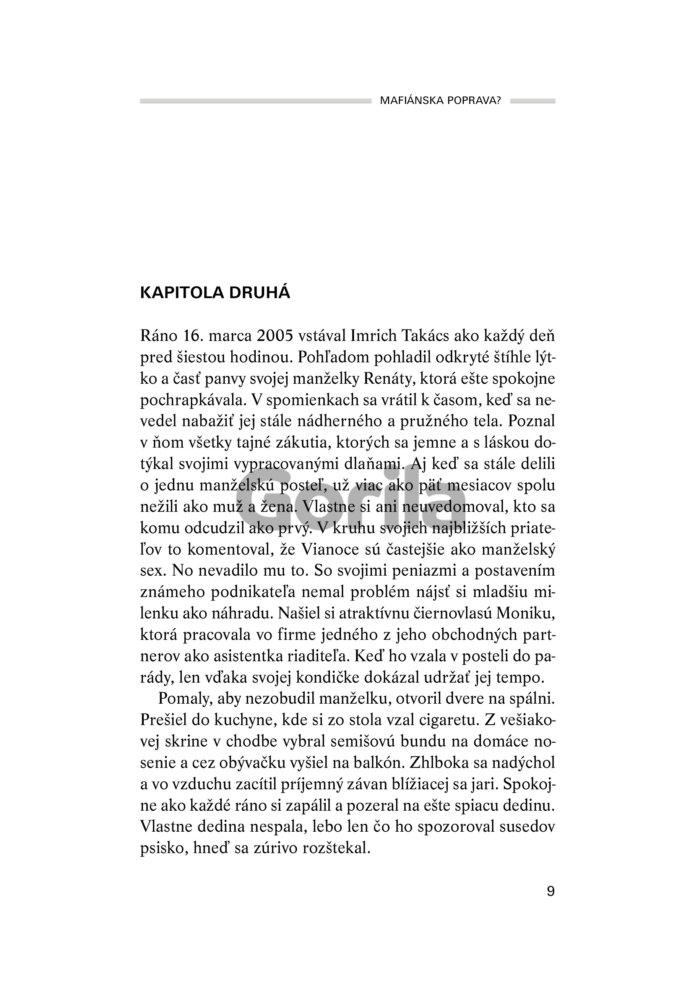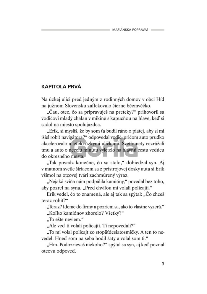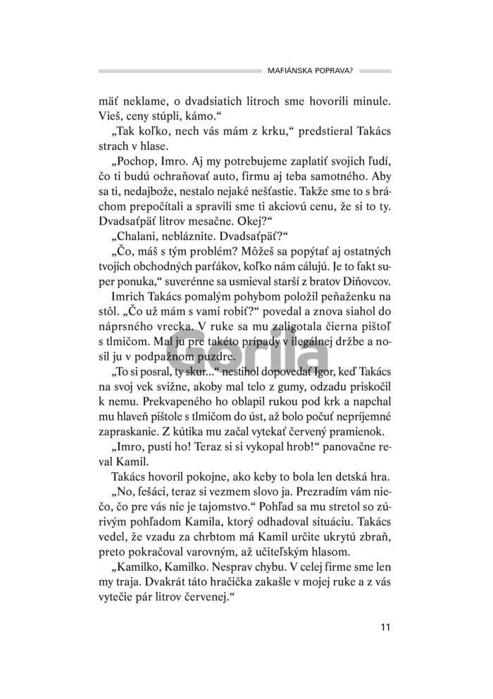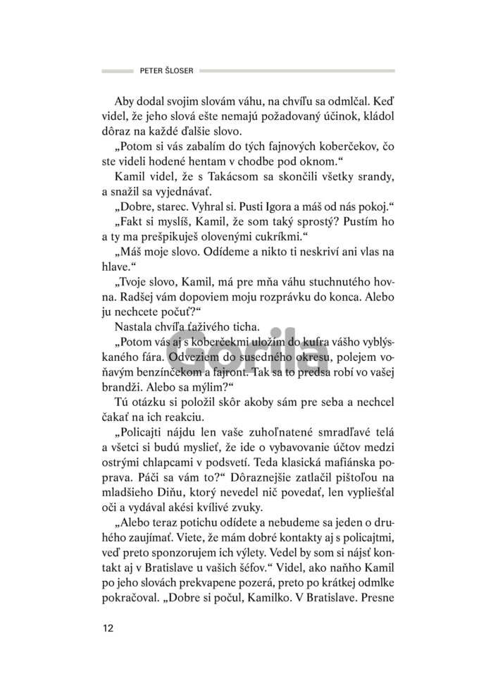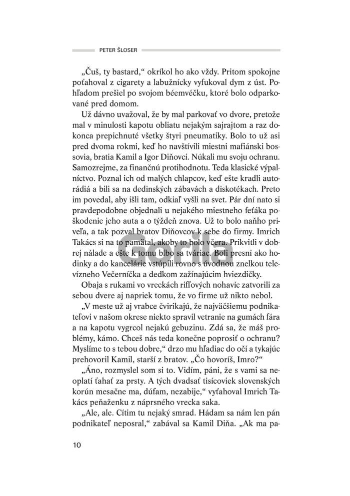 Autor Peter Šloser neopisuje len reálne zákulisie zločinu a (ne)schopnosť štátnych zložiek bojujúcich proti nemu, ale aj prepojenie úplatných politikov na krivých policajtov a mafiu. Všetko, čo pri vyšetrovaní mafiánskych vrážd a iných zločinov vnímal svojimi zmyslami, podáva formou, ktorá je nespojiteľná s realitou.