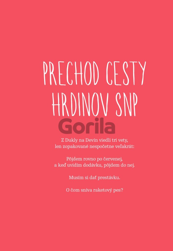 Cesta hrdinov SNP je červená turistická magistrála, ktorá sa tiahne celým Slovenskom od Duklianskeho priesmyku až po Devín. Autorke knihy sa podarilo na tejto takmer 770 km dlhej trase vytvoriť ženský rýchlostný rekord, keď ju prešla za 11 dní a 18 hodín. Kniha je plná jej vtipných pozorovaní z cesty a prenikavých pocitov, ktoré sa s pribúdajúcimi kilometrami menia ako na hojdačke, zatiaľ čo zaznamenané rozhovory s jej kamošmi z podporného tímu prerastajú do humorných absurdností.