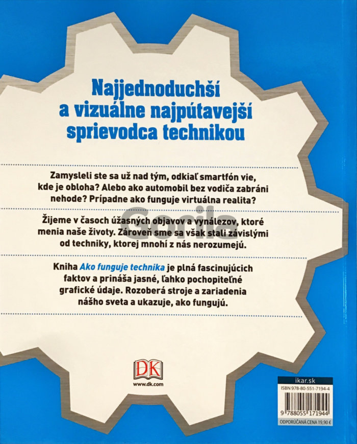 Kniha Ako funguje technika je plná fascinujúcich faktov a prináša jasné, ľahko pochopiteľné grafické údaje. Rozoberá stroje a zariadenia nášho sveta a ukazuje, ako fungujú.
