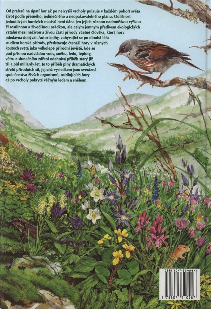 Od pralesů na úpatí hor až po nejvyšší vrcholy pulzuje v každém pohoří světa život podle přesného, jedinečného a neopakovatelného plánu. Odlišnost jednotlivých horských masivů není dána jen jejich různou nadmořskou výškou či rostlinou a živočišnou osádkou, ale celým jemným předivem ekologických vztahů mezi neživou a živou částí přírody včetně člověka, který hory odedávna dobýval.....