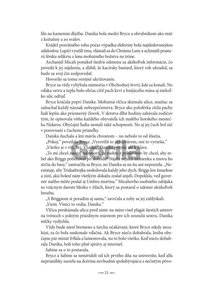 Hunt Athalar je neslávne známy padlý anjel, zotročený archanjelmi, ktorých sa kedysi pokúsil zvrhnúť. Jeho šéf využíva Huntove neľútostné schopnosti a neuveriteľnú silu na jediný účel - aby bez zbytočných otázok zabíjal jeho nepriateľov. Keď začne v meste démon rozsievať paniku, predostrie mu neodolateľnú ponuku: ak pomôže Bryce nájsť vraha, slobodu bude mať na dosah.