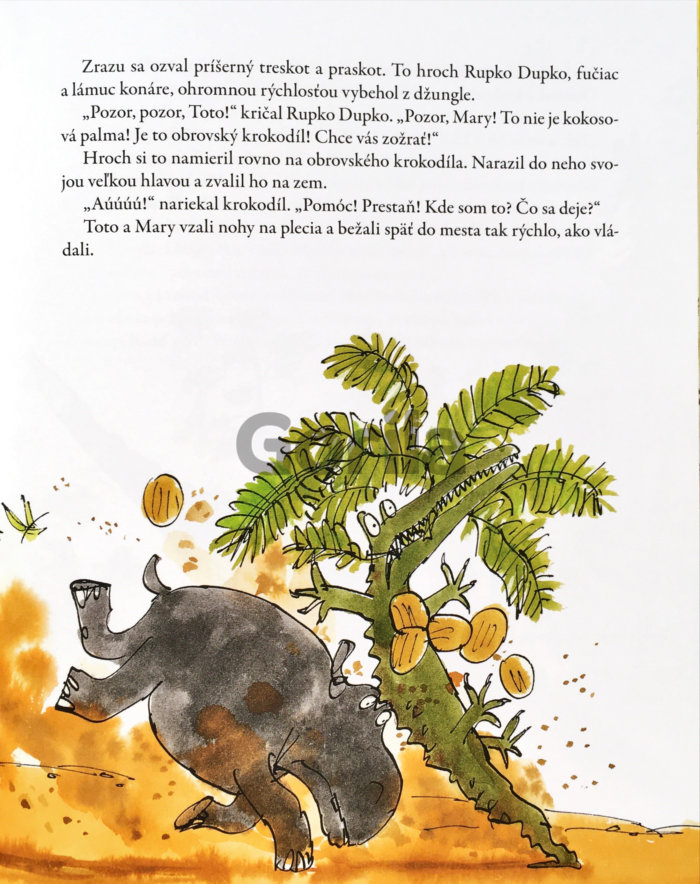 Obrovský krokodíl je pažravec, mrzút a zákerník. Neštítil by sa zožrať ani malé decko. Zvieratá z džungle jeho hnusné triky aj prestrojenia odhalia a porátajú sa s ním raz a navždy.