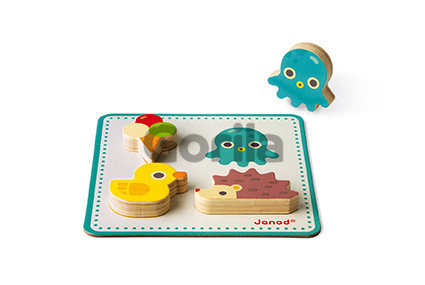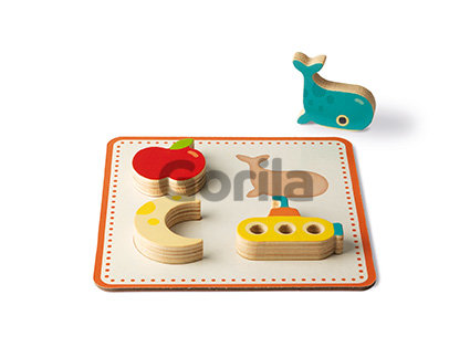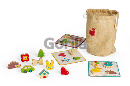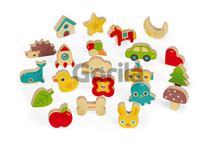 S týmto dreveným pexesom sa zabavia všetky deti, samé, ale aj spoločne. Malé detičky si môžu karty s obrázkami položiť pred seba a spomedzi tvarov vybrať a správne priradiť - tvar položiť na správne miesto na kartičke. Ale inak je drevené pexeso určené pre dvoch až piatich hráčov. Hráči si rozdajú náhodne kartičky, ktoré si položí každý pred seba. V taške sú uložené drevené tvary. Spolu ich je 21. Hráči si po jednom náhodne vyberajú z tašky predmety a ak ho majú na kartičke, priložia ho na správne miesto na nej. Vyhráva hráč, ktorý zaplní svoju kartičku najrýchlejšie. ALE POZOR! Jeden tvar je tam navyše. Ak vytiahneš z tašky kostičku, musíš vrátiť zo svojej karty predmety naspať to tašky.