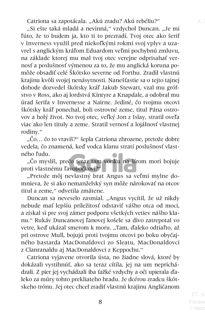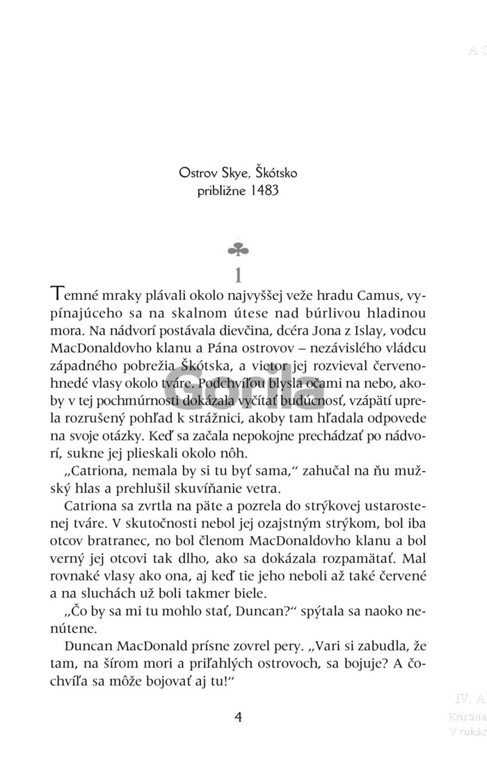 Mladá slovenská autorka Kristína Brestenská si získala veľkú čitateľskú obľubu trilógiou zo stredovekého Anglicka. Obdobiu stredoveku zostala verná aj v najnovšom románe - strhujúcom dobrodružno-romantickom príbehu zasadenom do čarovného prostredia legendami opradeného škótskeho ostrova Skye.