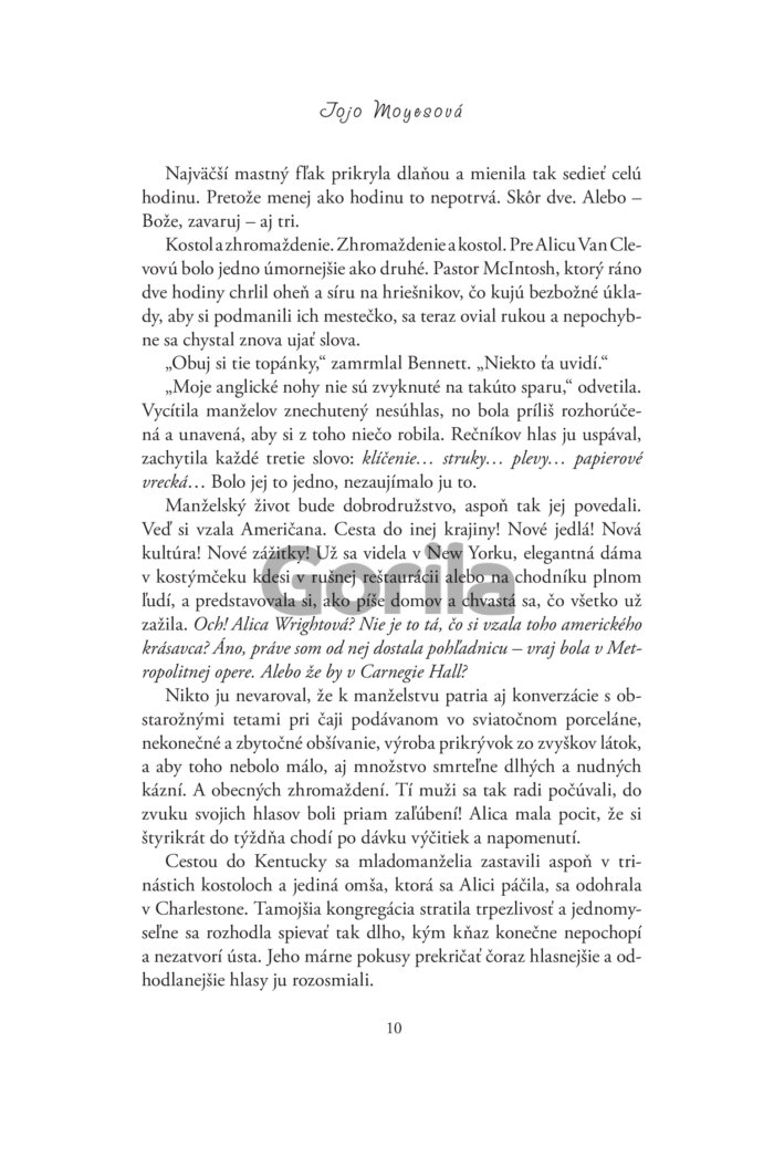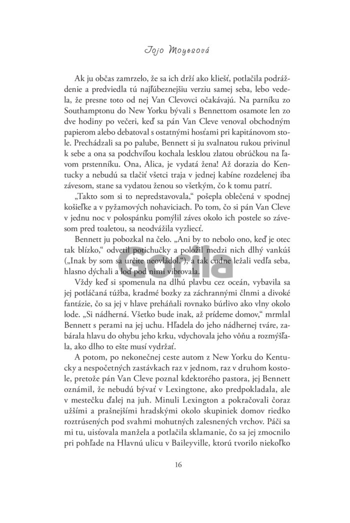 Angličanka Alica sa v rodičovskom dome nudí, cíti sa nedocenená a nepochopená. Potom spozná Bennetta Van Cleva, pekného, bohatého Američana, a bezhlavo sa zaľúbi. Svadba a odchod do Ameriky v tridsiatych rokoch 20. storočia vyzerali ako veľké dobrodružstvo, no život novomanželky v Baileyville, skostnatenom provinčnom mestečku uprostred kentuckých hôr, je pre Alicu sklamaním. Preto sa – skôr než jej to manžel stihne zakázať – prihlási ako dobrovoľníčka do projektu konských knižníc.