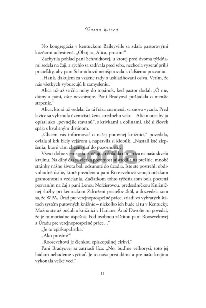 Skupinka mladých žien pod vedením rebelantskej Margery O'Harovej jazdí na koňoch cez hlboké lesy v okolí a roznáša knihy a časopisy chudobným, ktorí by sa k nim inak nedostali. Alica nachádza slobodu, priateľstvo a naplnený život, po akom túžila. Lenže nie všetci to schvaľujú. Alicin svokor s ňou vedie doslova vojnu a Baileyville sa pridá na jeho stranu. Postačí dievčatám v nerovnom boji ich hlboké vzájomné puto a viera v silu písaného slova?