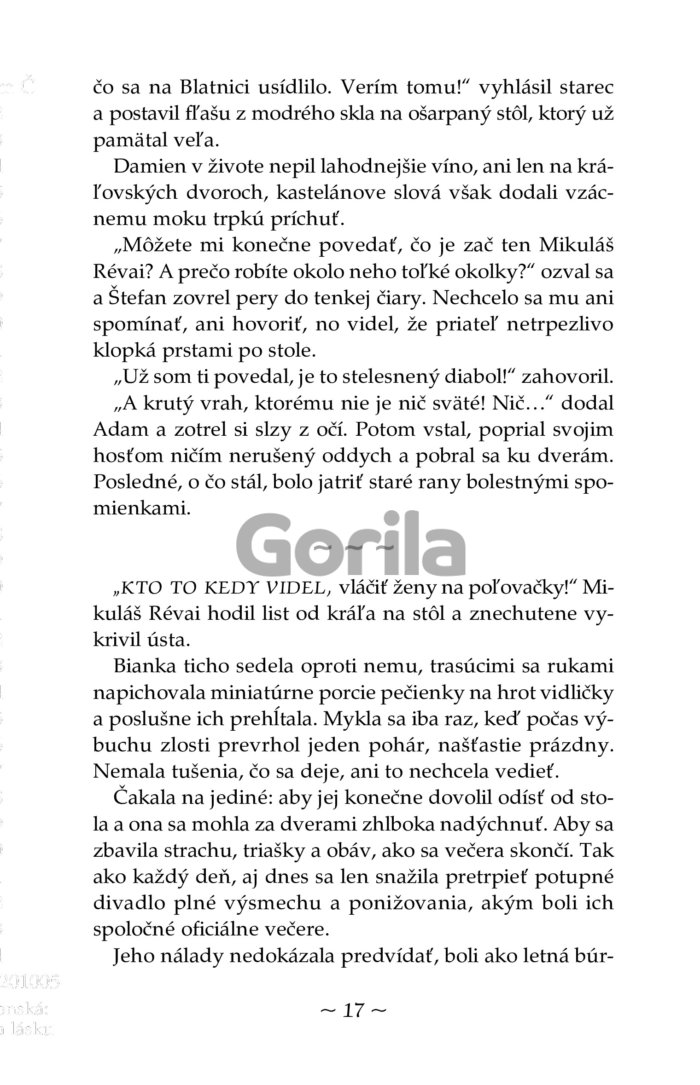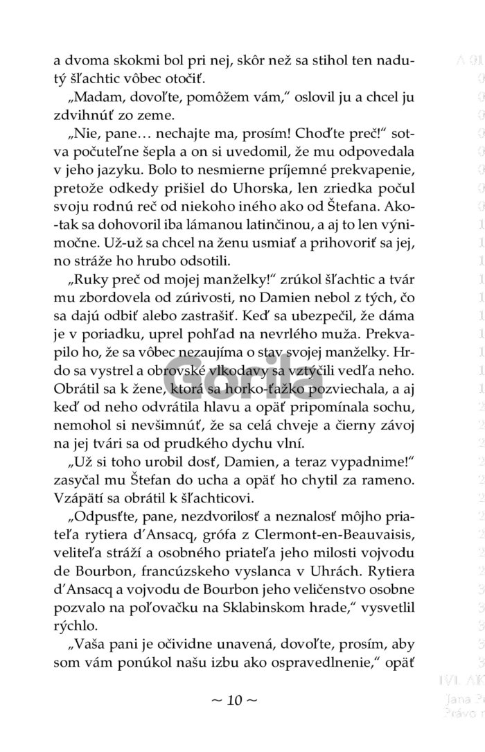 Jana Pronská, jedna z najúspešnejších slovenských spisovateliek, už celé roky prináša svojim čitateľom podmanivé romance, úzko späté s našou históriou. Vo svojom najnovšom, dvadsiatom románe nás opäť zavedie na stredoveké hrady a kráľovské dvory, kde sa odohráva strhujúci príbeh zakázanej lásky.