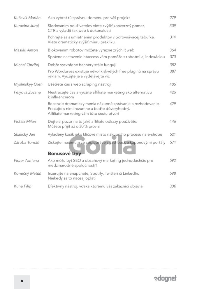 Kniha je vhodná pre každého, kto pracuje alebo podniká v oblasti online marketingu, prípadne má na starosti alebo pripravuje vlastný online projekt. Koordinátorom a spoluautorom knižky je Štefan Polgári, ktorý stojí za publikáciami ako Online marketing - tvorba úspešného zarábajúceho webu a Tvorba úspešného zarábajúceho blogu. Tak isto vedie projekt Ecommerce Bridge a spoluzaložil Dognet, jednu z najväčších affiliate sietí v strednej Európe.