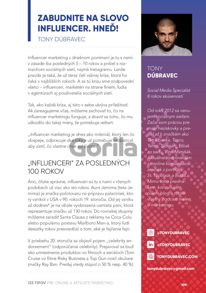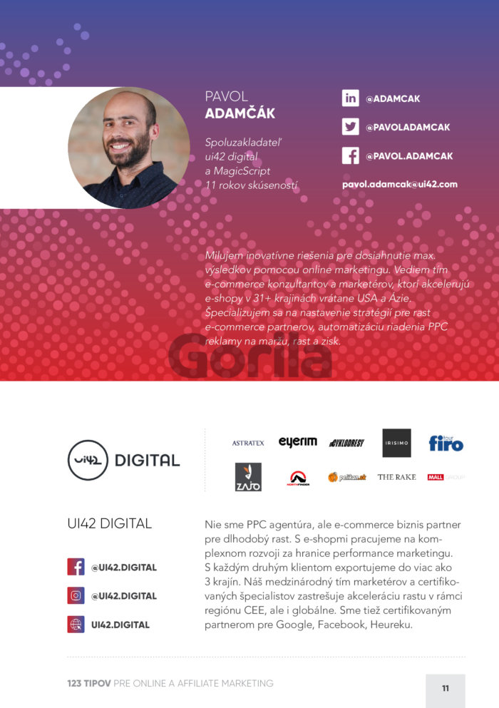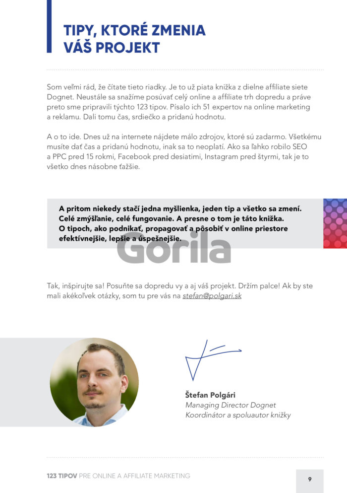Niekedy vás a váš projekt vie posunúť jednoduchý tip, často stačí jedna veta a otvorí sa nový vesmír. O správnych tipoch a nápadoch je celé úspešné podnikanie. Preto sme dali dohromady 51 profesionálov z oblasti online reklamy a marketingu s jasným cieľom a zadaním: Spísať najlepších 123 tipov pre online a affiliate marketing.