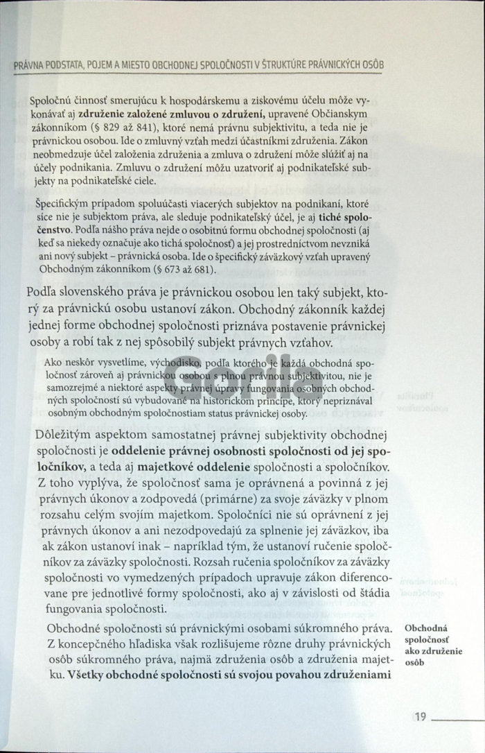 Druhý diel publikácie „Obchodné právo“ je venovaný predovšetkým právu obchodných spoločností a družstvu, je prirodzeným pokračovaním prvého zväzku. Z pohľadu štruktúry sa odlišuje od iných publikácií venovaných korporačnému právu. Podáva výklad inštitútov, podstatných súvislostí, a tým aj podstaty práva obchodných spoločností. Aj v tomto diele sa autori snažia uchopiť problematiku obchodného práva tak, aby bol výsledok funkčne viacúčelový. Publikácia má slúžiť ako učebnica obchodného práva, ktorá je odlišná od doterajších pedagogických výkladov práva obchodných spoločností z hľadiska metódy spracovania, štruktúry, ale aj samotného obsahu. Základný výklad je doplnený o podnety pre ďalšie štúdium doktríny a judikatúry. Publikácia vzhľadom na praktický význam korporačného práva akcentuje praktické dôsledky teoretických konštrukcií. Výklad je prepojený s ilustračnými príkladmi a úlohami. Publikácia má však aj širšie ambície a poslúži všetkým tým, ktorí sa potrebujú vzdelávať, resp. doplniť či prehĺbiť znalosti práva obchodných spoločností a jeho aplikácie v praxi.