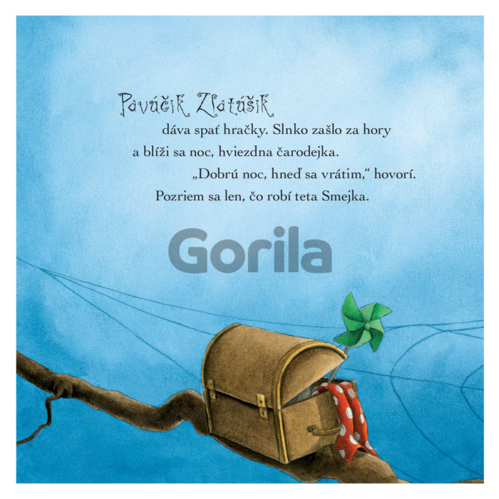 Milý príbeh vo veršoch, v ktorom večne zvedavý pavúčik chce vedieť, čo robia jeho príbuzní a kamaráti, skôr než pôjdu spať. Zistí, že každý z nich robí niečo iné. Ale najmä to, čo ho baví a pri čom sa cíti príjemne. Napokon aj na pavúčika čaká teplá postieľka, do ktorej ho uloží mamička. Leporelo nadväzuje na úspešnú sériu knižiek o Pavúčikovi Zlatúšikovi a je určené najmenším deťom na pokojné večerné čítanie.