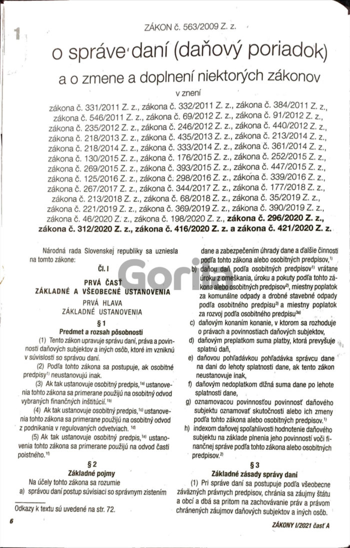 ZÁKON č. 563/2009 Z. z. o správe daní (daňový poriadok) a o zmene a doplnení niektorých zákonov