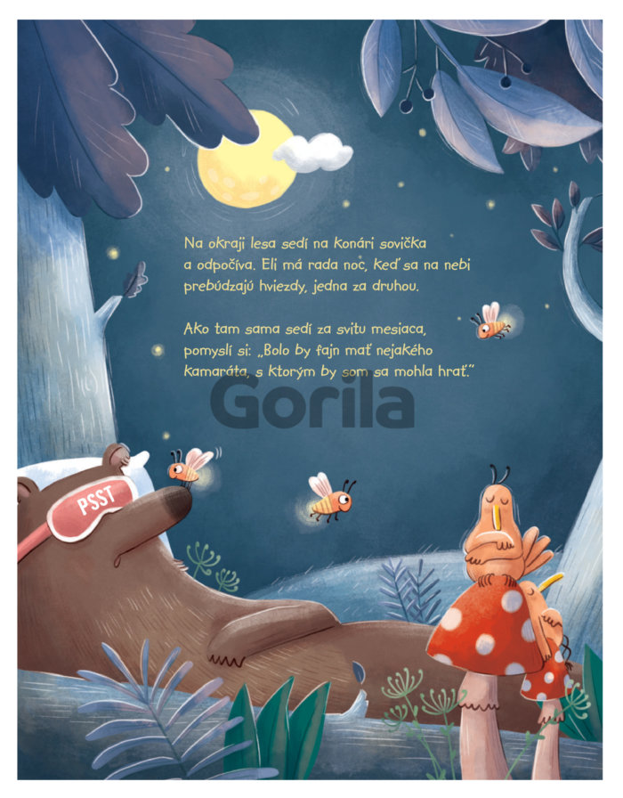 Sovička Eli má rada noc, keď sa na nebi prebúdzajú hviezdy, jedna za druhou. Ako tak sama sedí za svitu mesiaca na konári, pomyslí si: „Bolo by fajn mať nejakého kamaráta, s ktorým by som sa mohla hrať.“