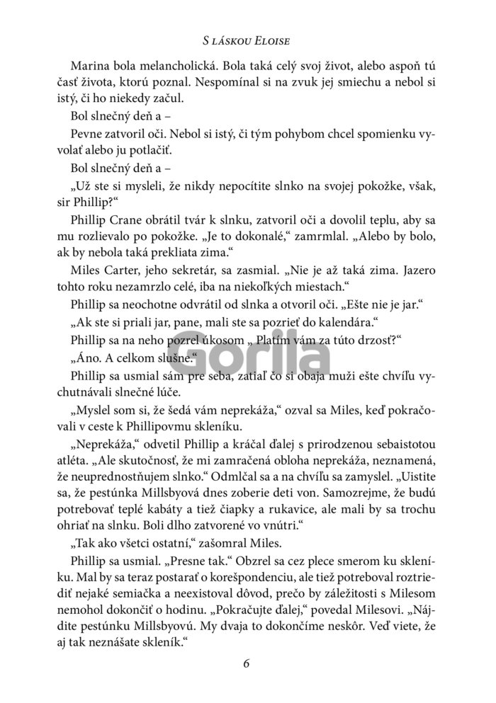 Sir Phillip Crane nadviaže s Eloise Bridgertonovou netradičný vzťah plný slov na listovom papieri. Vyzerá to tak, že Eloise je stará dievka, ktorá bude určite nenápadná, poddajná a určite bude zúfalo túžiť po manželstve. Tak jej ho navrhne. Pred jeho dverami sa však objaví žena, ktorá je stelesnením všetkého možného, len nie pokojnej dámy...