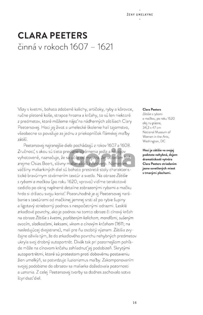 Ženy sú dlhodobo obľúbeným námetom umelcov, ale ich prínos ako umelkýň je dodnes nedocenený. Nemusia už síce tvoriť anonymne či pod mužským pseudonymom, ale ešte v roku 1989 položila skupina Guerilla Girls newyorskej verejnosti otázku: „Musia byť ženy nahé, aby sa dostali do Metropolitného múzea?" Odpoveď na túto otázku nájdete aj vo svojej knižnici - stačí si prelistovať dejiny umenia. Ešte lepšie však urobíte, ak siahnete po knižke, ktorá reviduje tradičný kánon a predstaví vám tvorbu päťdesiatich významných umelkýň od 16. storočia až po súčasnosť. Artemisia Gentileschi, Georgia O´Keeffe, Frida Kahlo či Louise Bourgeois... Schválne, ktoré z týchto mien poznáte?