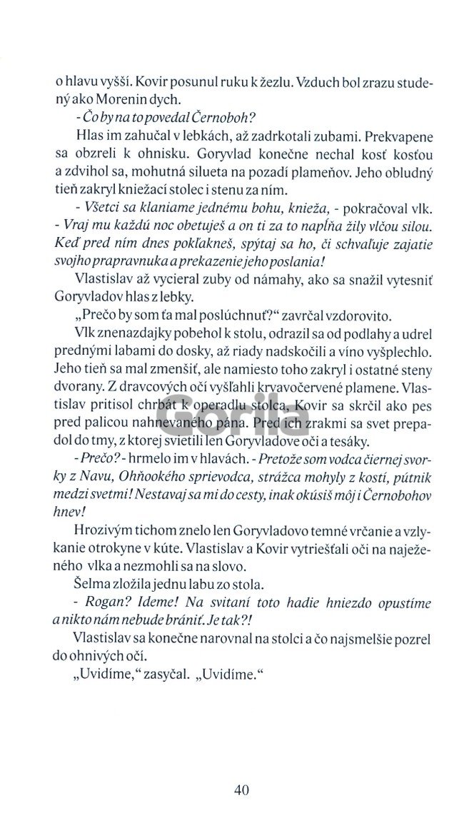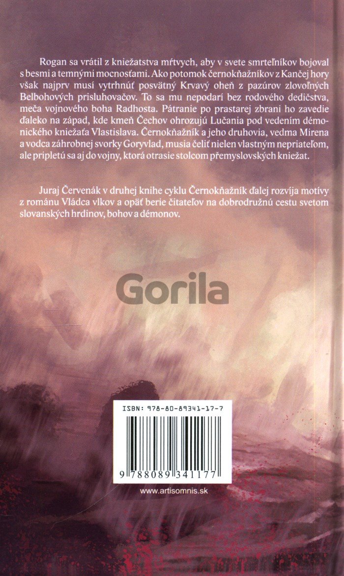 Rogan sa vrátil z kniežatstva mŕtvych, aby v svete smrteľníkov bojoval s besmi a temnými mocnosťami. Ako potomok černokňažníkov z Kančej hory však najprv musí vytrhnúť posvätný Krvavý oheň z pazúrov zlovoľných Belbohových prisluhovačov. To sa mu nepodarí bez rodového dedičstva, meča vojnového boha Radhosta. Pátranie po prastarej zbrani ho zavedie ďaleko na západ, kde kmeň Čechov ohrozujú Lučania pod vedením démonického kniežaťa Vlastislava. Černokňažník a jeho druhovia, vedma Mirena a vodca záhrobnej svorky Goryvlad, musia čeliť nielen vlastným nepriateľom, ale pripletú sa aj do vojny, ktorá otrasie stolcom přemyslovských kniežat. Juraj Červenák v druhej knihe cyklu Černokňažník ďalej rozvíja motívy z románu Vládca vlkov a opäť berie čitateľov na dobrodružnú cestu svetom slovanských hrdinov, bohov a démonov.