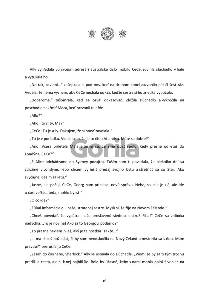 Kto a kde je siedma záhadná sestra? Na rozdiel od šiestich predchádzajúcich kníh je v Stratenej sestre zakódovaná záhada – poznáme len mytologické meno siedmej sestry, no jej skutočná identita je nám neznáma. Nevieme, ako vyzerá a nevieme ani to, v ktorej krajine žije. Pátranie nás zavedie k dvom mladým ženám, z ktorých každá môže byť stratenou sestrou, a navštívime aj niekoľko krajín: Nový Zéland, Írsko, Kanadu, Anglicko aj Francúzsko. No čo ak stratená sestra nechce byť nájdená?