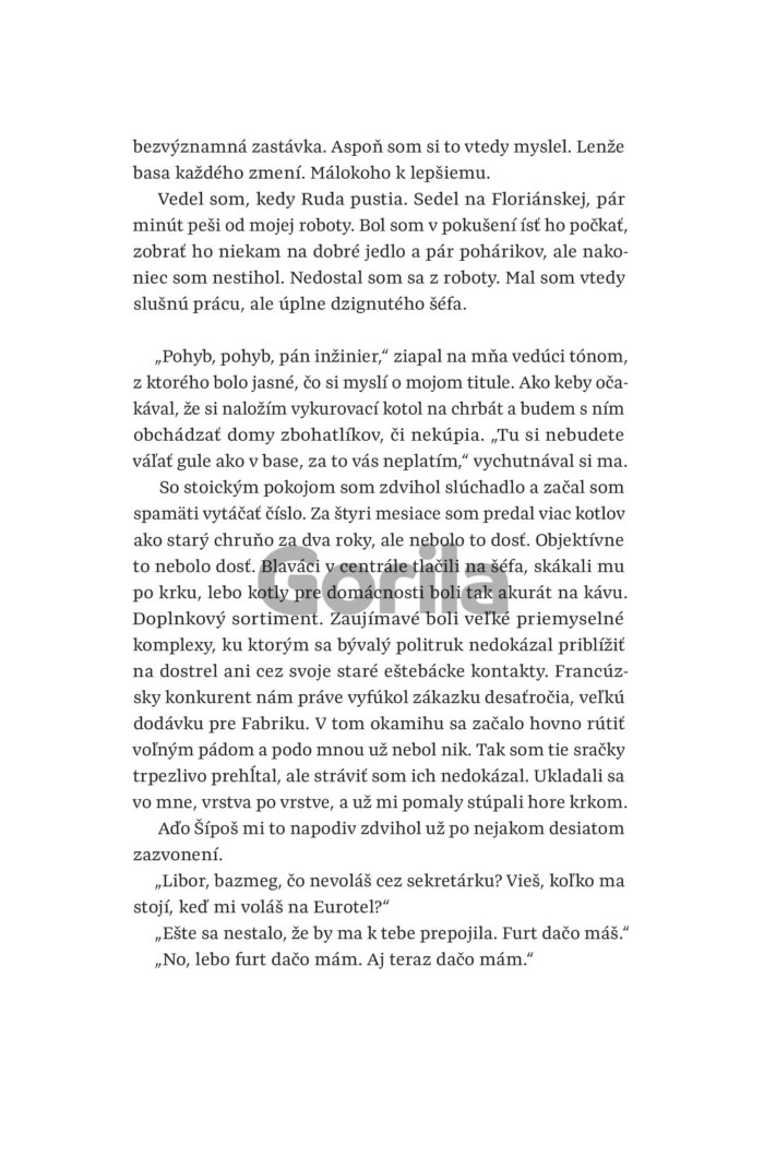 Liborovu závratnú kariéru odštartuje nová známosť z väzenia, ale formujú ju aj staré priateľstvá zo školských lavíc. Divoké deväťdesiatky sú len šum v pozadí jeho úspechu. Turbulentný proces transformácie z totality na vyspelú kleptokraciu je ako vlak, ktorého kolesá zomelú spoločnosť na fašírku, no Libor sa ním vezie do vysnívaného cieľa prvou triedou. Vyjsť so spolucestujúcimi nie je vždy jednoduché a stanica, v ktorej napokon Libor vystúpi, nemusí byť nutne miestom, ktoré si predstavoval.