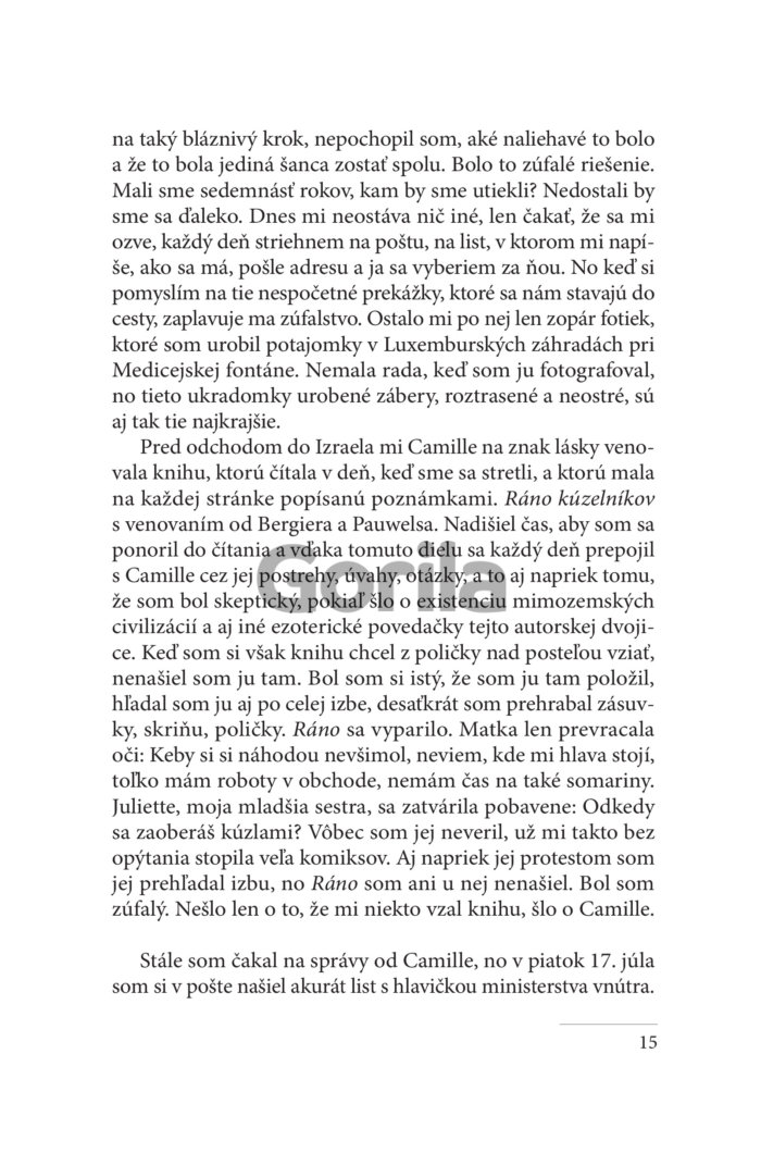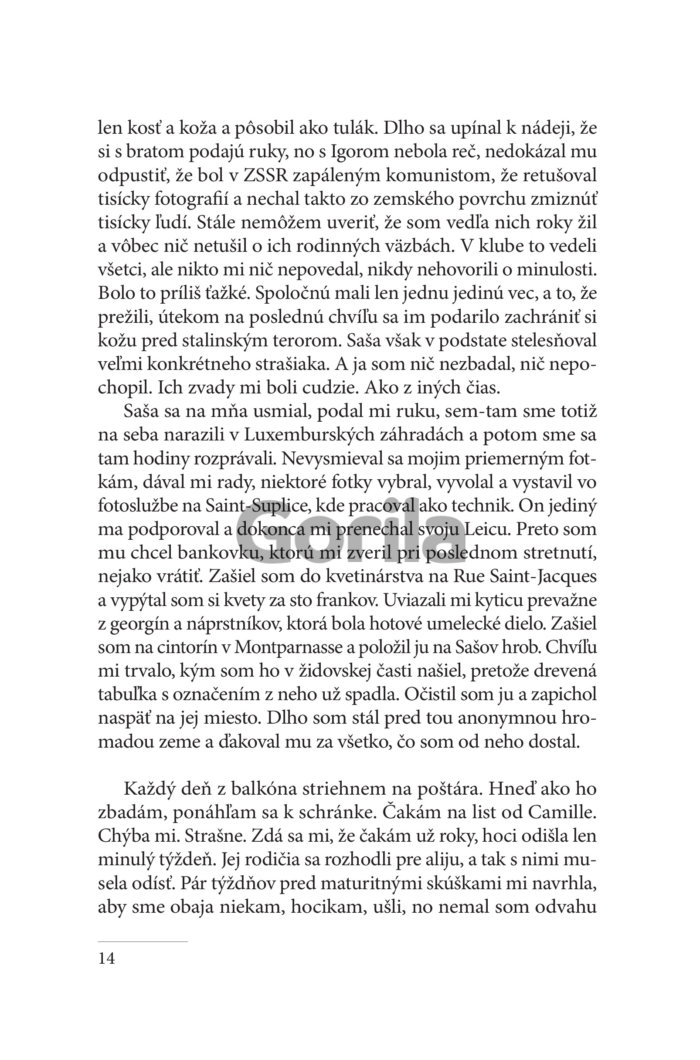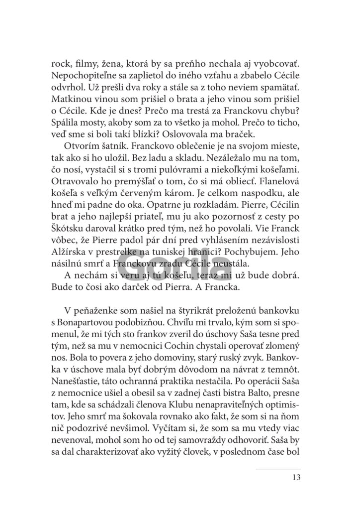 Michel Marini má práve devätnásť rokov a za sebou maturitu. Chce vycestovať za Camille do Izraela, so svojou Leicou dobyť svet a nájsť Cécile, priateľku svojho nezvestného brata Francka, ktorý sa nevrátil z Alžírska po tom, čo dezertoval. Ako presvedčený komunista sa totiž rozhodol radšej meniť svet. V zajatí svojich lások a tajomstiev poslední nenapraviteľní optimisti prechovávajú v týchto neľahkých časoch veľké nádeje. Od kolonializmu k pádu sovietskeho bloku, od zázrakov konzumnej spoločnosti po mystické volanie Jean-Michel Guenassia vykresľuje intímnu epopeju celej jednej generácie.