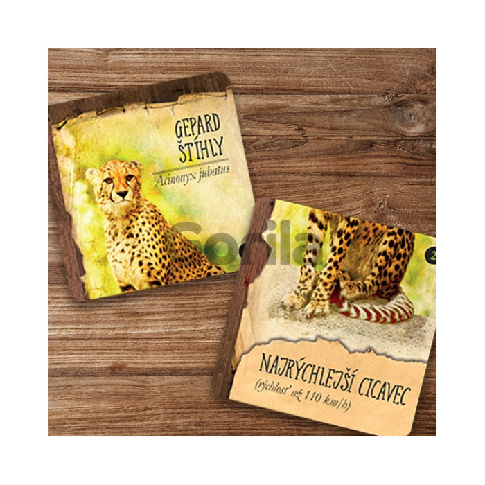 Napr.: Otočíte kartičku na ktorej je napísané: "Gepard štíhly". V tomto prípade musíte nájsť kartičku s odpoveďou: "Najrýchlejší cicavec (rýchlosť až 110 km/h)".